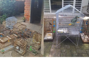 Quinze aves silvestres mantidas ilegalmente em cativeiro foram resgatadas, neste domingo (12), de uma casa no povoado Bela Vista, na zona rural de Teresina. No local, 17 gaiolas foram destruídas.